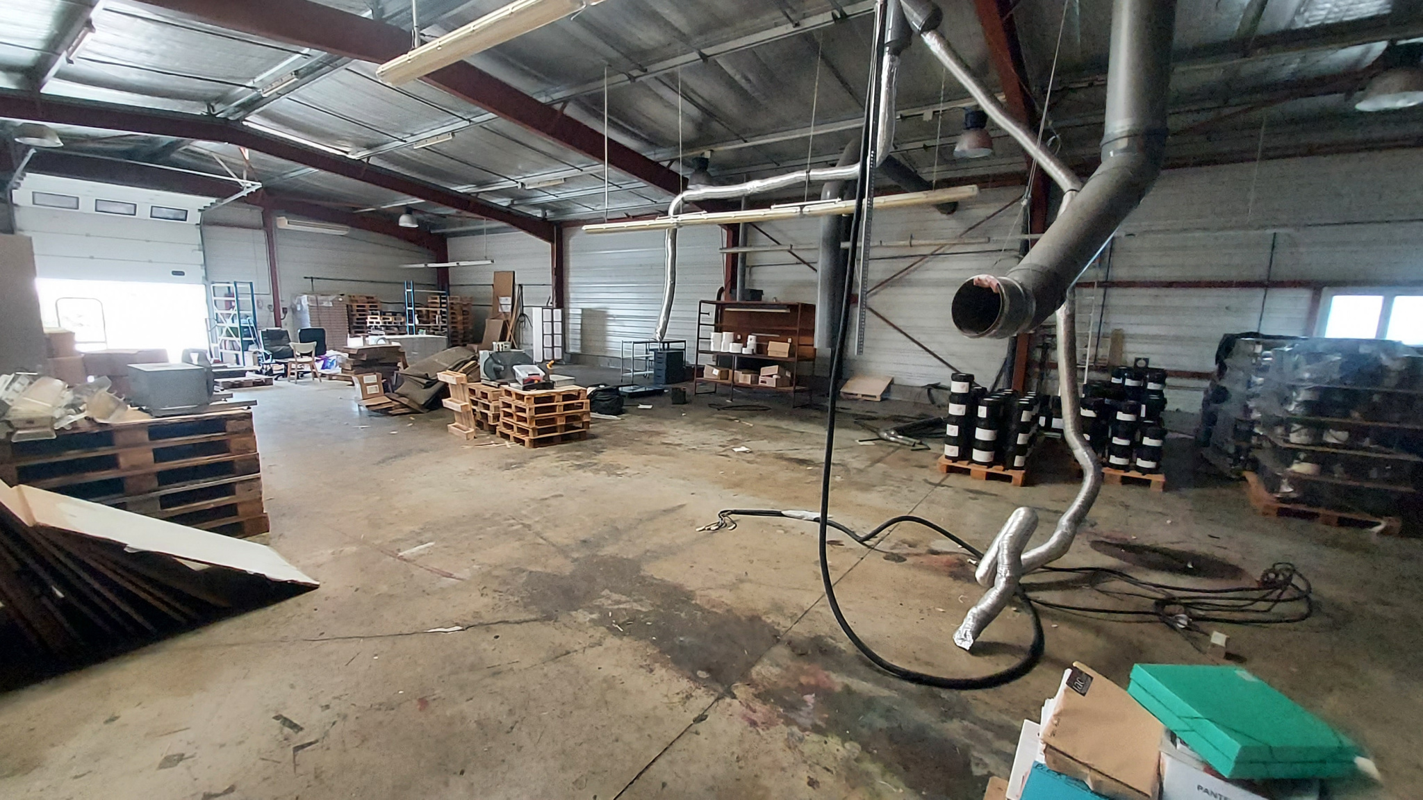 -330 m² de local avec grande hauteur sous plafond et une dalle béton au sol. Un réseau air comprimé est présent sur toute une façade. Porte sectionnelle haute et large.
