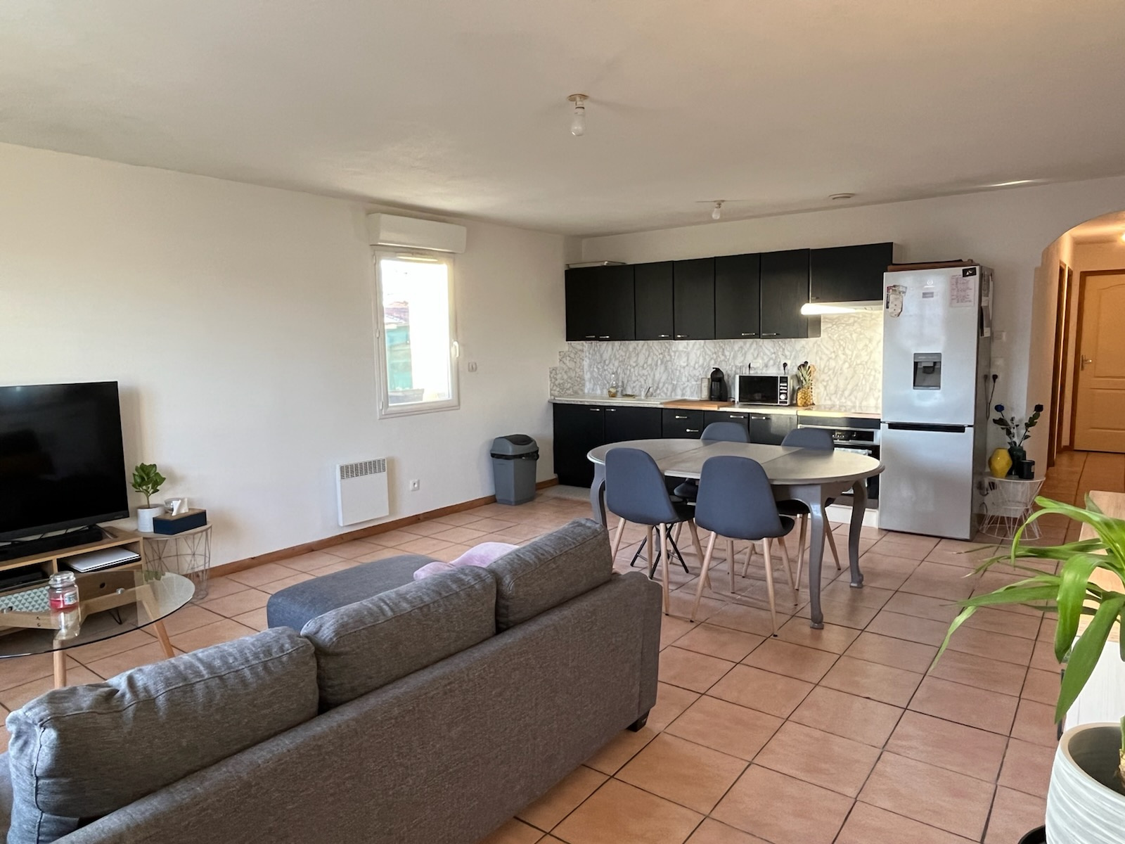 Maison plain pied de type 4 avec grande pièce de vie lumineuse, 3 chambres, jardin et garage.