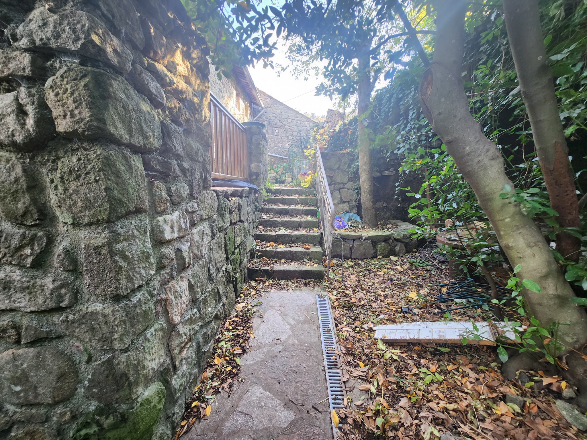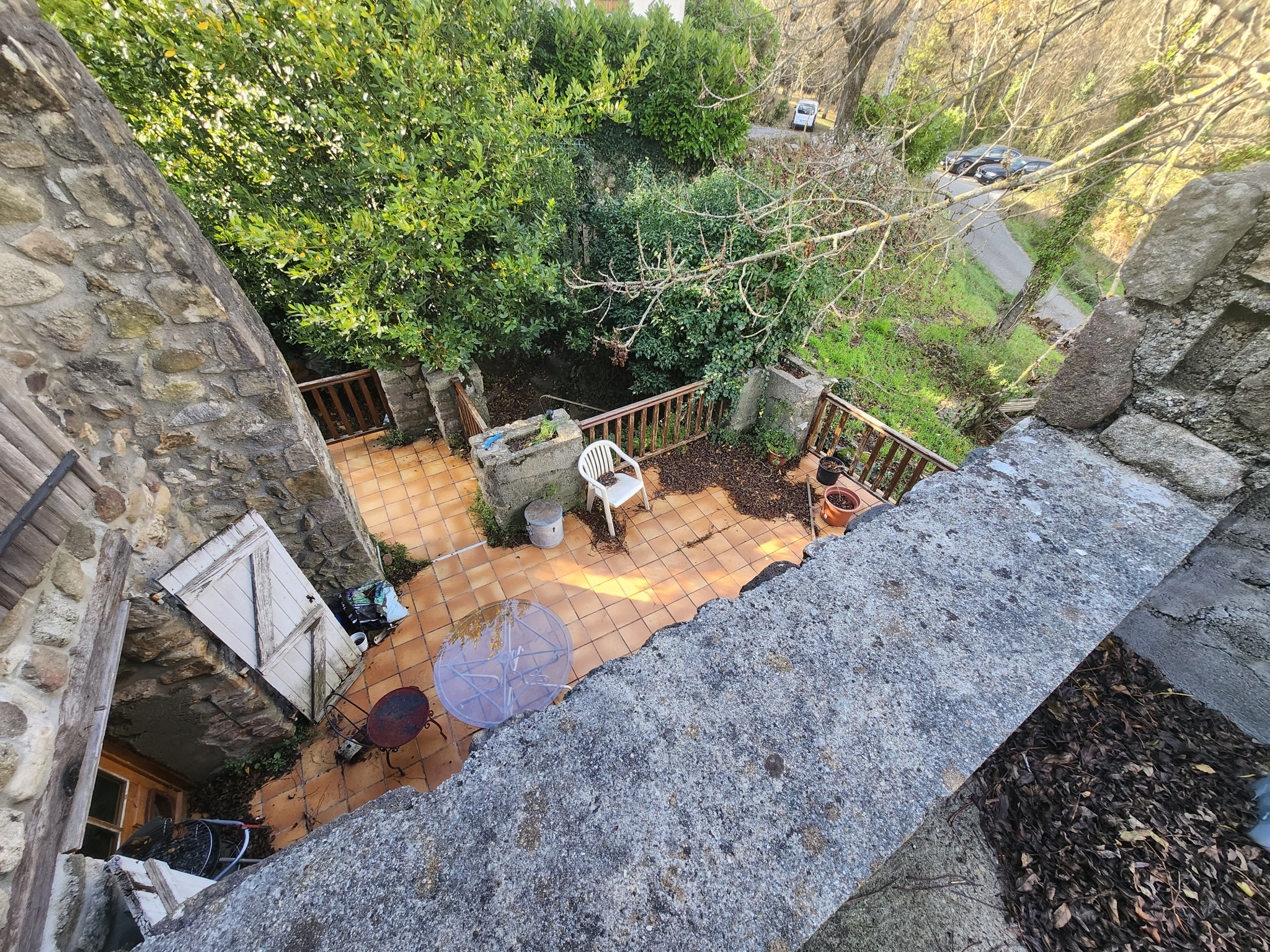 Maison de hameau en pierre (un mûr mitoyen, pas gênant et sans vis-à-vis) sur un terrain attenant de 200 m² avec stationnement et un box servant de garage.