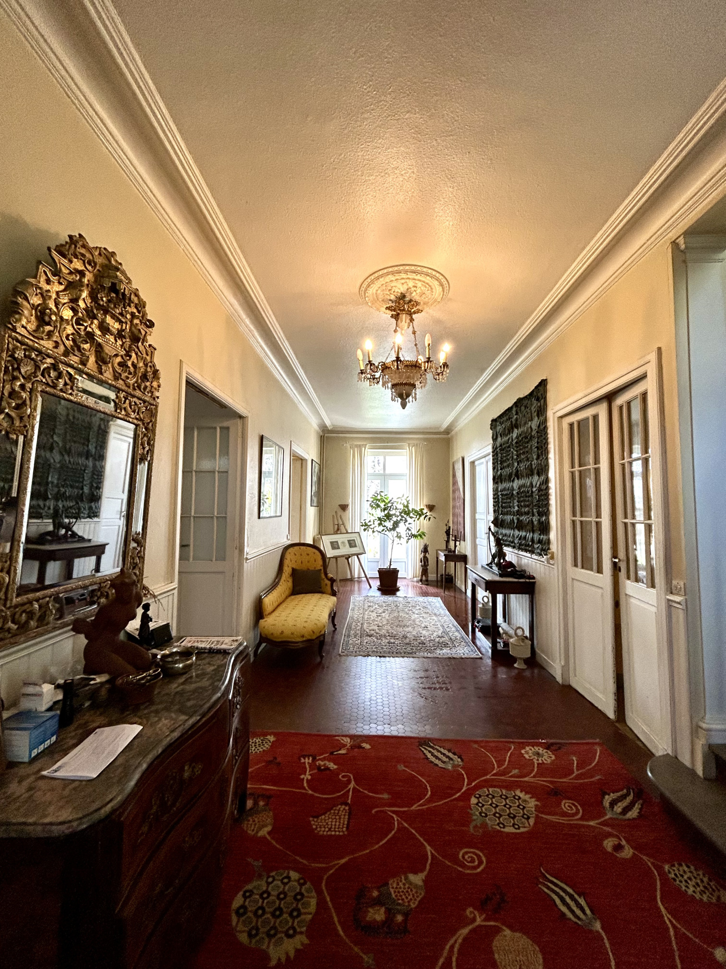 La maison de maître, d'une superficie d'environ 400 m² habitables, bénéficie d'une vue dégagée plein sud sur le parc et sur la chaîne des Pyrénées depuis l'étage, offrant un cadre de vie rare et privilégié.