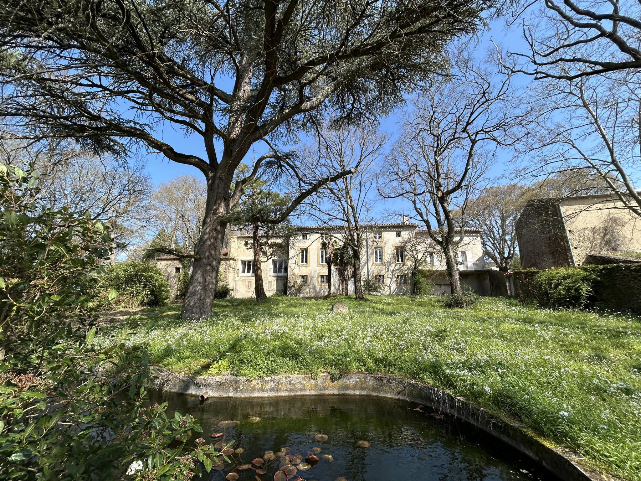 La propriété s'étend sur un magnifique parc clos de murs en pierre d'environ 14 000 m², véritable écrin de verdure, agrémenté d'une piscine chauffée et d'une source intarissable.