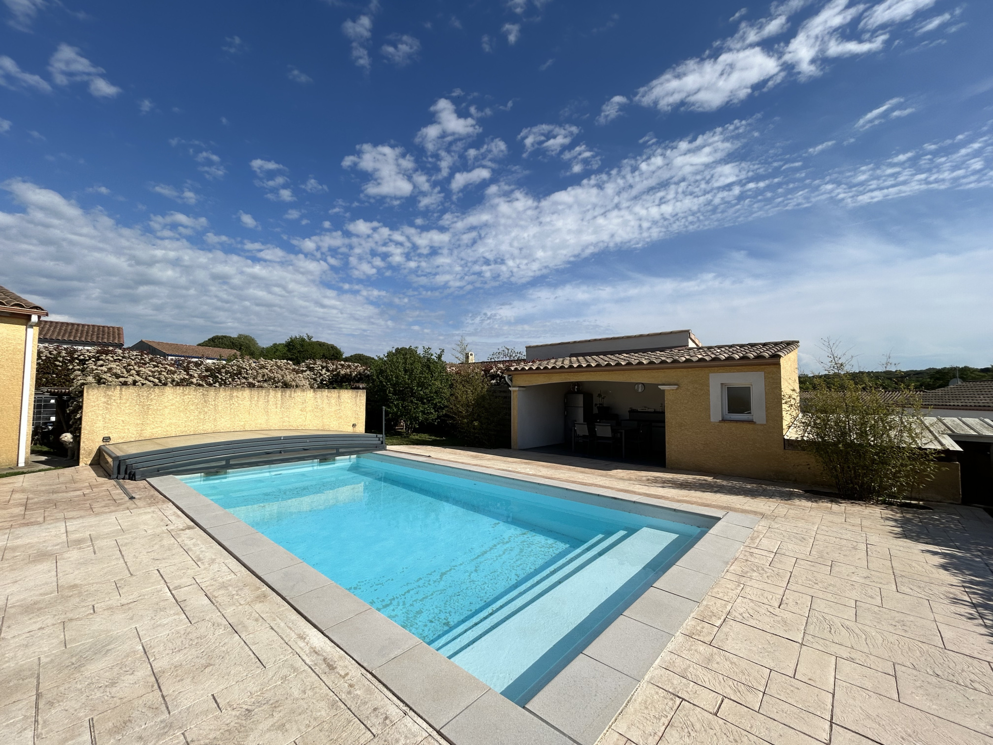 À l’extérieur, vous profiterez d’un bel espace détente avec piscine, margelles en béton imprimé, couverture coulissante, ainsi qu’une cuisine d’été aménagée signée Forge Adour, idéale pour les moments conviviaux.