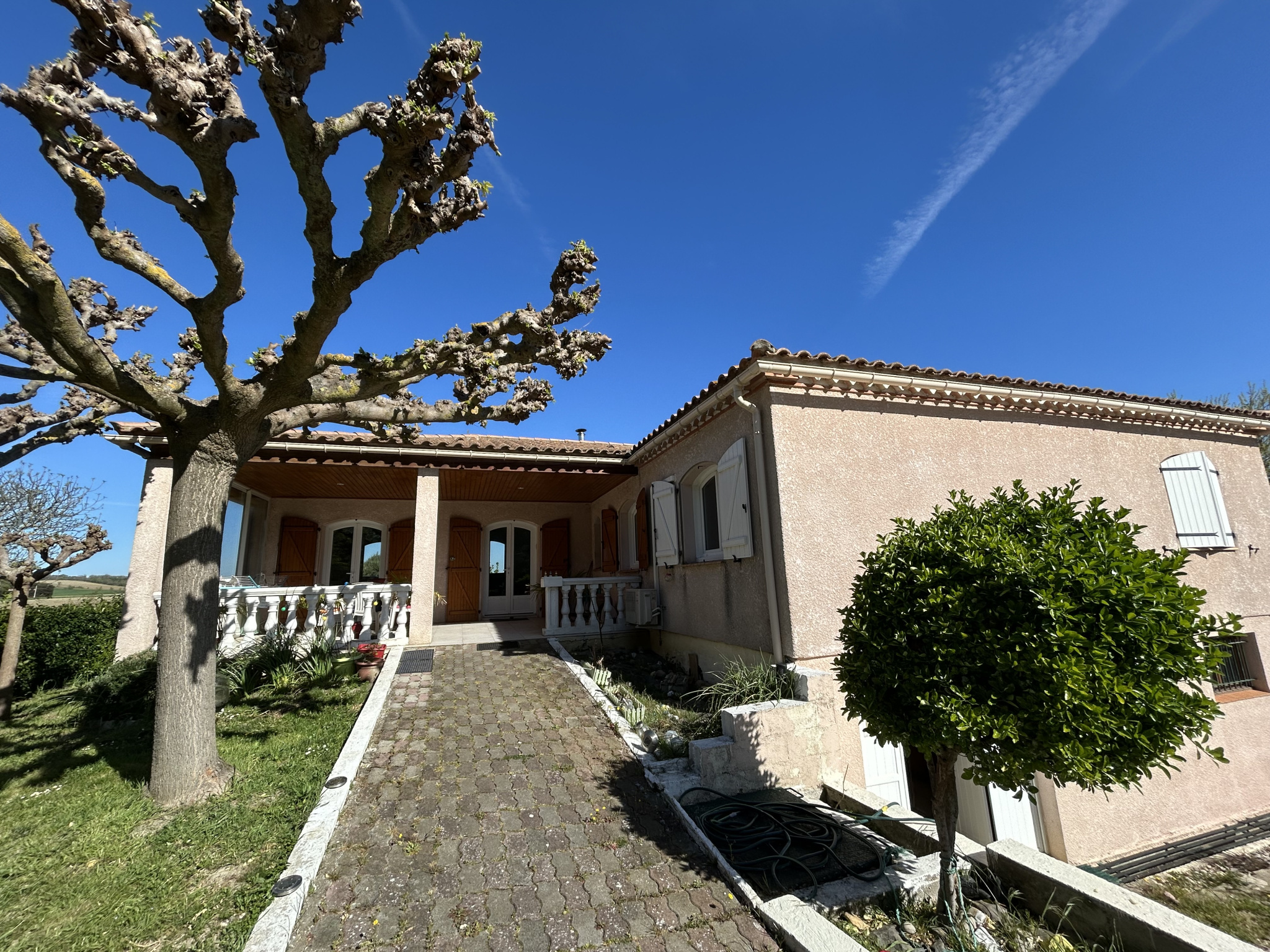 La maison, soigneusement entretenue, s’ouvre à vous avec le confort moderne, climatisation et ballon thermodynamique, mais c’est son atmosphère tranquille qui séduit avant tout. Dès l’entrée, un vaste espace de stationnement accueille vos pas et vos invités, comme une invitation à prolonger le moment.