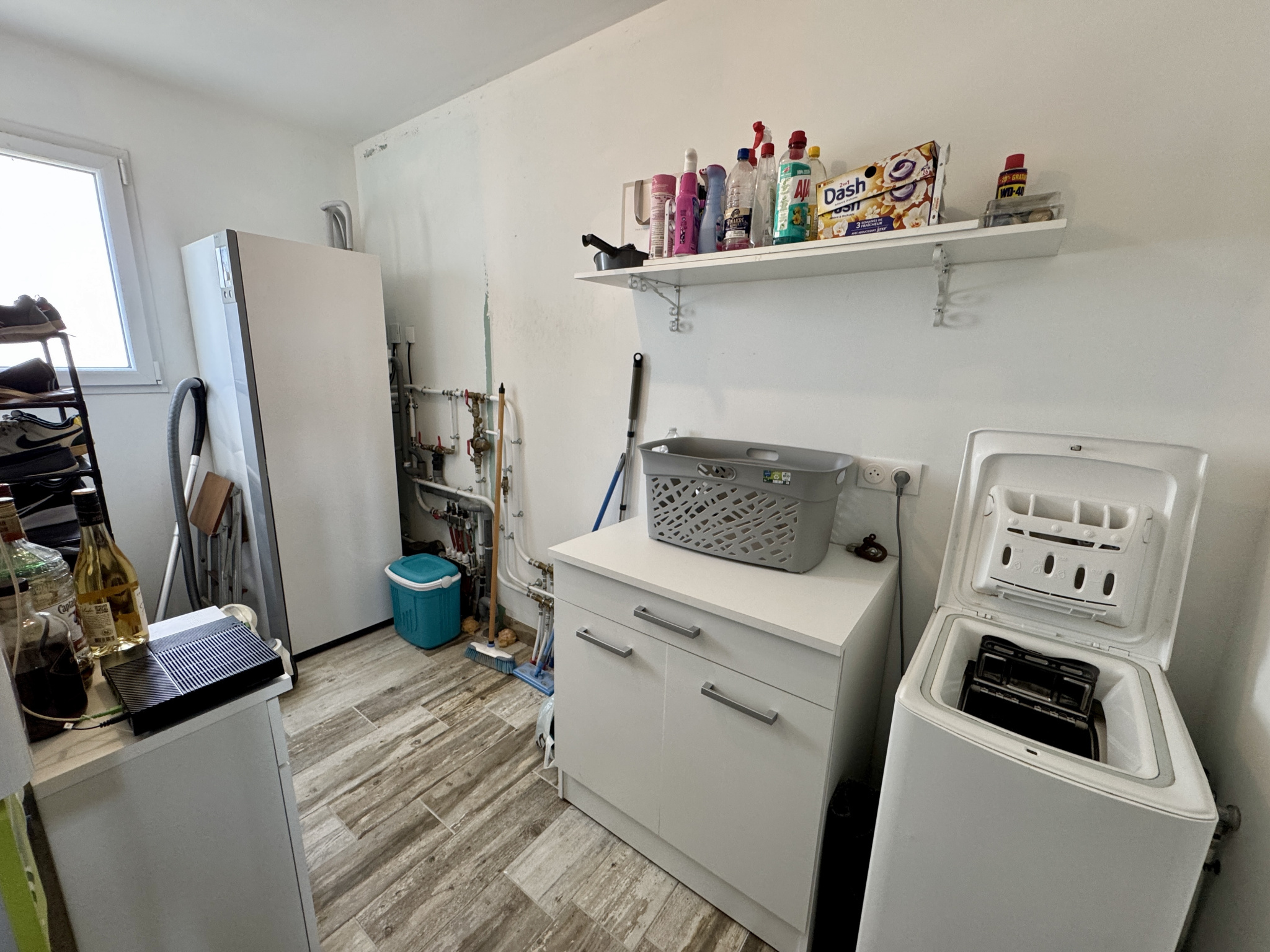 Une entrée dessert la pièce de vie lumineuse et spacieuse, le couloir quant à lui permet de rejoindre les 2 chambres avec placards, la salle d'eau avec douche à l'italienne et les wc. Un cellier, un cabanon de jardin tout neuf ainsi qu'une terrasse toute neuve viennent compléter ce bien.
