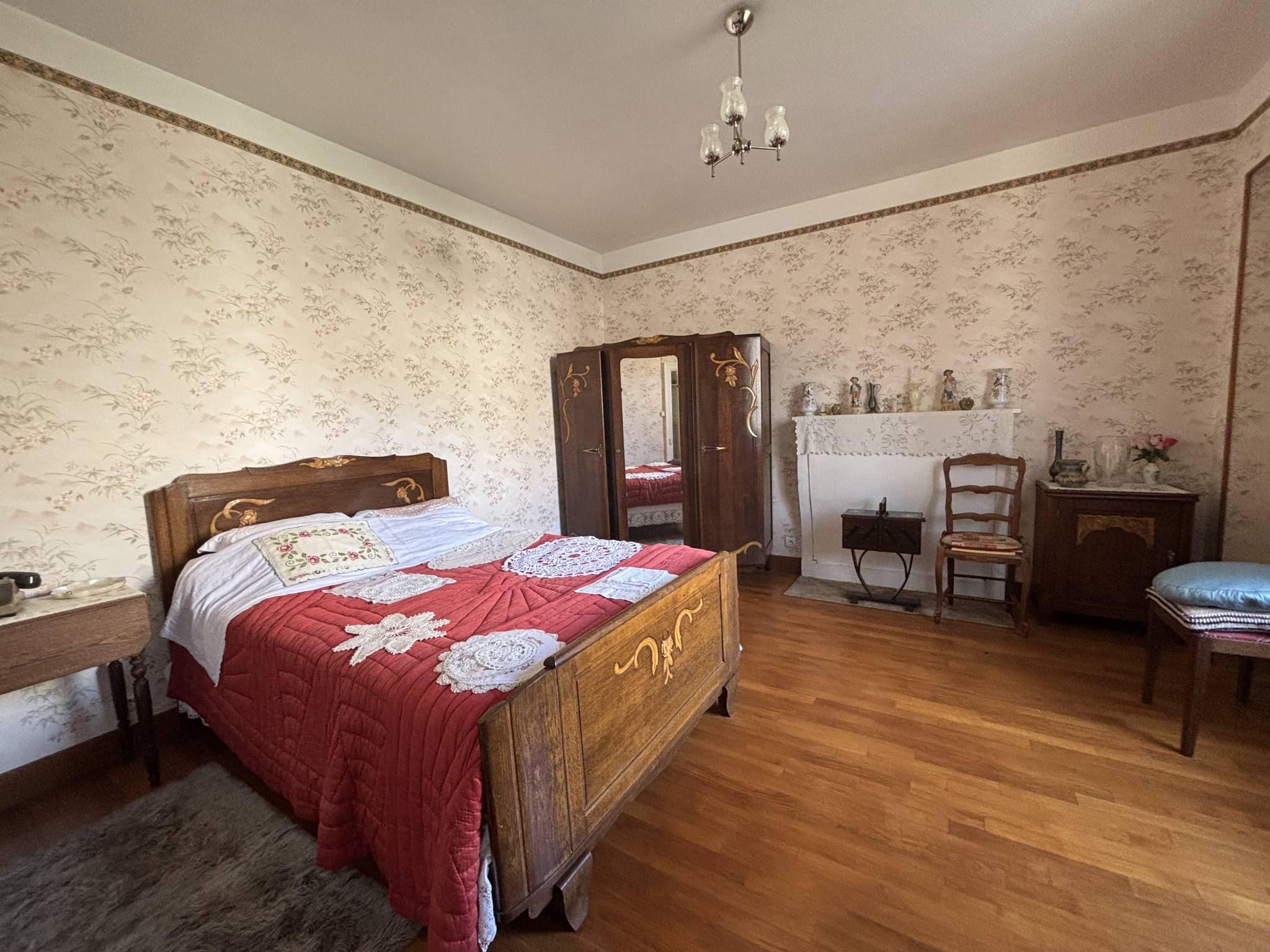 D'une véranda de 8m² récente , une cuisne de 20m² avec un évier en pierre , deux chambres avec parquet chêne et placards de rangement de 16m² environ , un petit salon accedant à un grenier aménageable de 90m² avec une chambre, une salle de bain , un toilette .