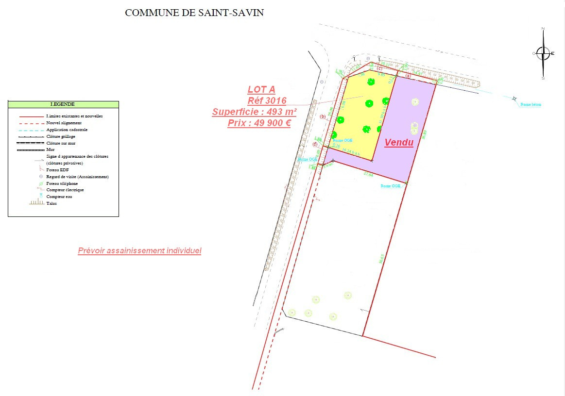 Contacter Sébastien GOYARD au O6.82.12.70.58 St SAVIN, proche centre (environ 400 m), terrain constructible d'une contenance d'environ 493 m². Libre de constructeurs, prévoir assaisnissement individuel. Etude G1 disponible.