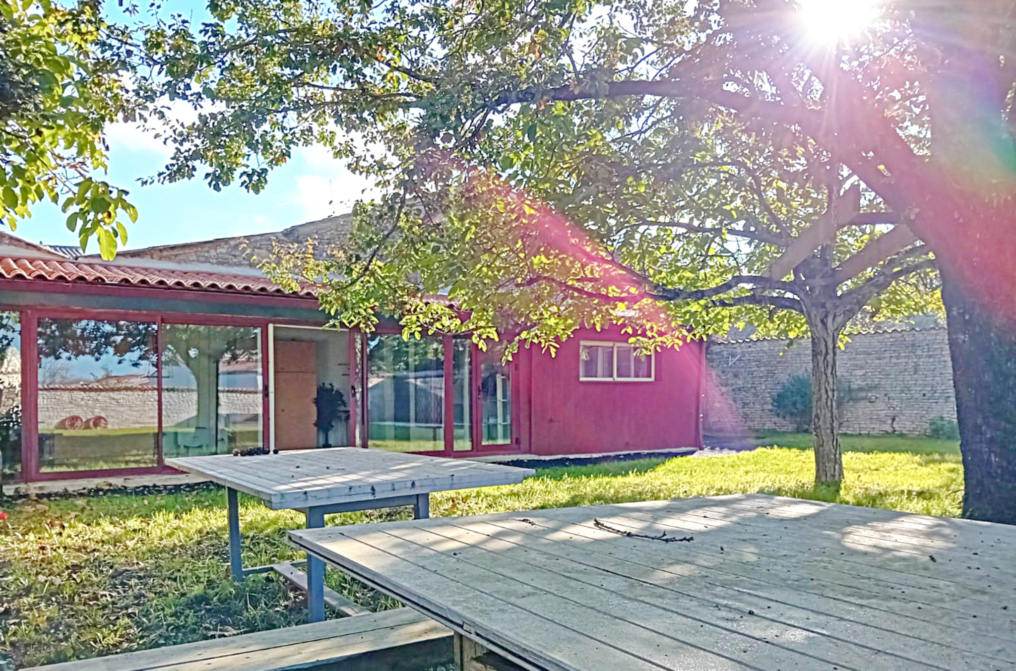 Grande terrasse avec piscine coque traitement au sel avec pool house, travaux réalisés en 2024, sans aucun vis-à-vis et une vue agréable sur la nature.