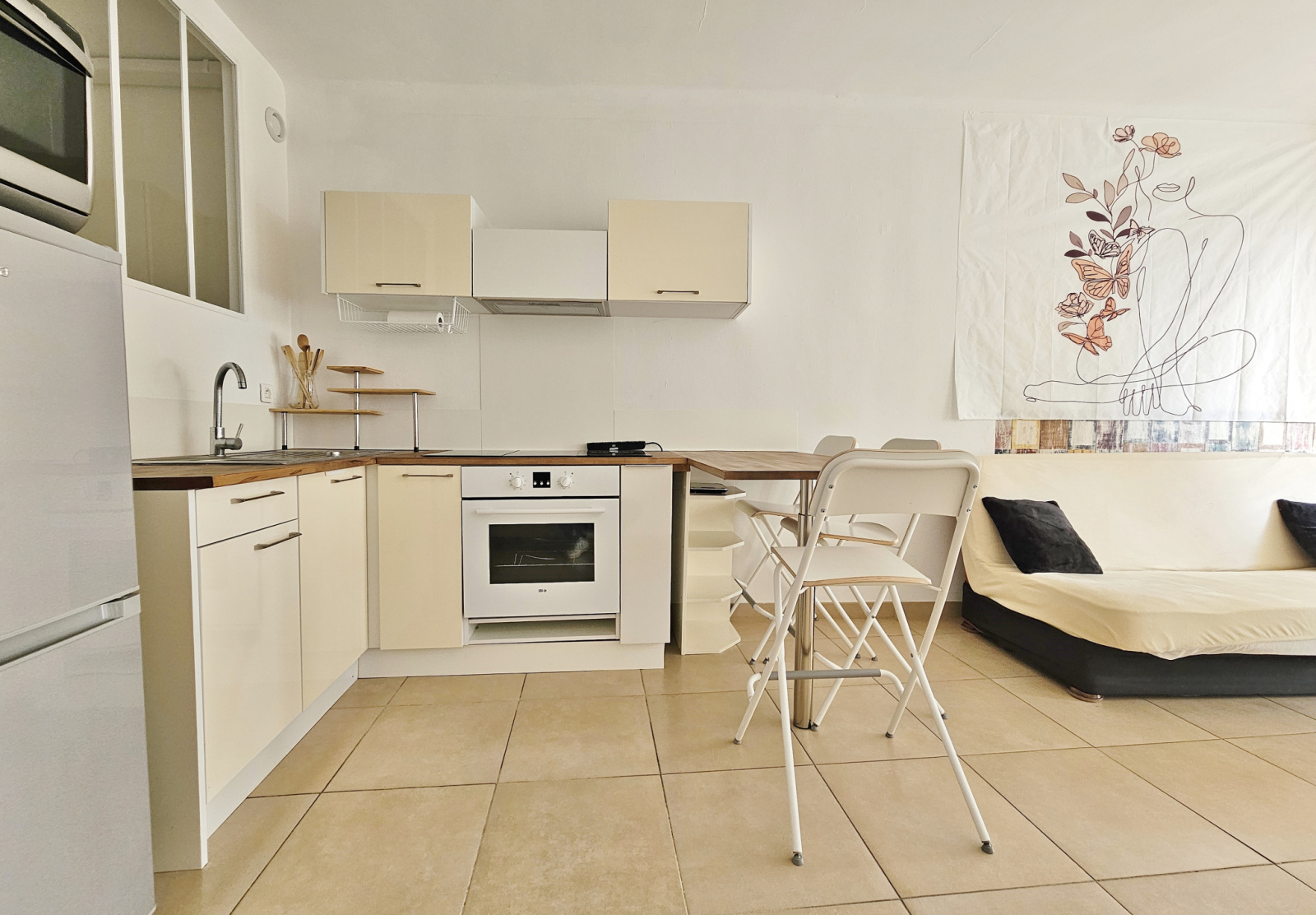 Entièrement rénové et meublé, il se compose d'une entrée, d'un séjour avec cuisine équipée ouverte, d'une chambre séparée avec placards et espace buanderie, et d'une salle d'eau avec wc.