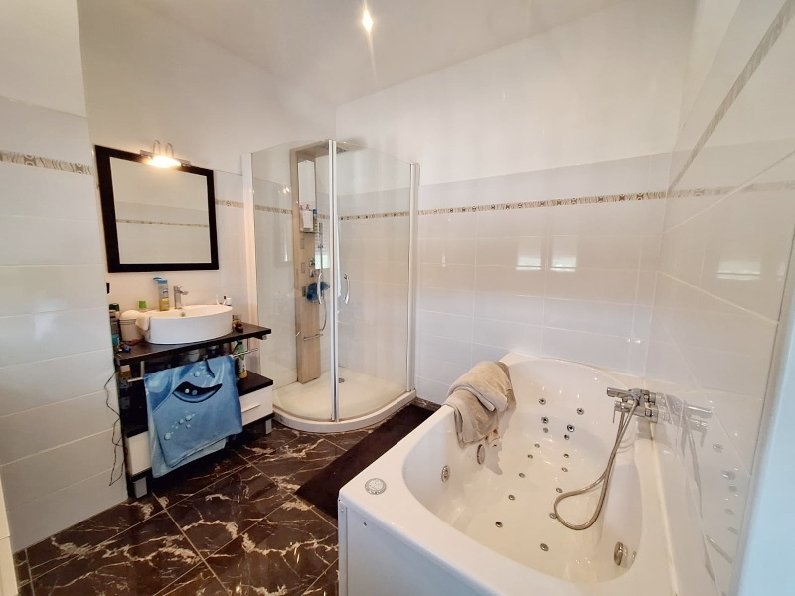 La villa offre de jolies prestations : climatisation, stores électriques, alarme, caméras de surveillance, sols carrelés ... . Un conduit de cheminée (actuellement bouché) est également présent.