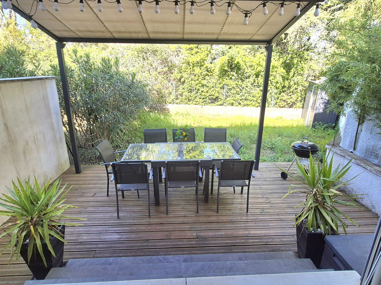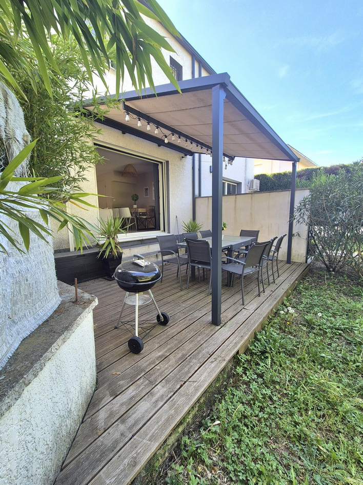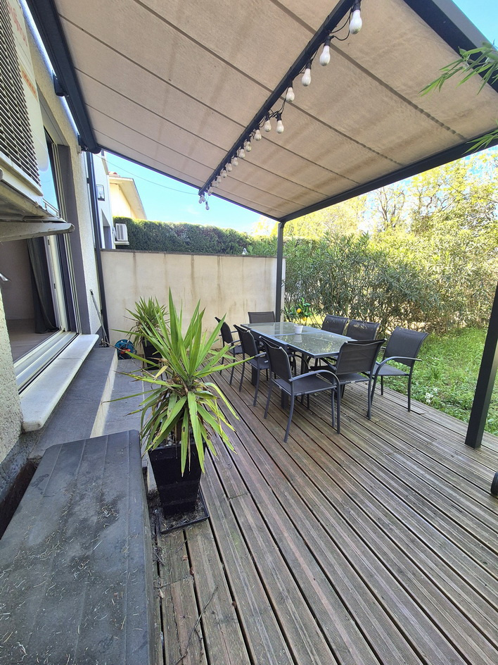 À vendre sur la commune d'Alès maison récente mitoyenne d'un côté en excellent état comprenant au rez-de-chaussée une cuisine équipée ouverte sur un salon-séjour lumineux, d'un hall d'entrée accueillant et d'un WC indépendant. À l'étage, la maison offre une salle de bains (Baignoire, douche, vasque), un WC séparé, ainsi que deux chambres dont une avec dressing et l'autre avec un placard. À l'extérieur, une agréable terrasse de 20 m² vous attend, ainsi qu'un jardin l'ensemble sur une surface cadastrale de 168 m². Les prestations incluent un portail électrique, des menuiseries en PVC double vitrage, des volets roulants électriques, un poêle à bois, des radiateurs électriques et la climatisation au rez-de-chaussée ainsi qu'à l'étage. Christophe Barthelot Tuc immobilier Alès 06.12.50.71.31 Référence 3106 Prix : 175 000 € (Honoraires charge vendeur) EXCLUSIVITE