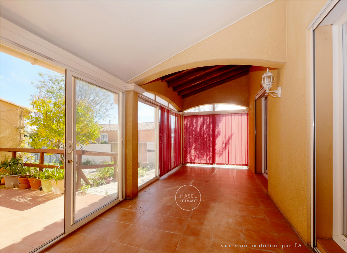 Jolie villa languedocienne 4 faces T5 construite en R+1 sur une parcelle de plus de 500m² dans quartier résidentiel à 500 m du centre historique du village.