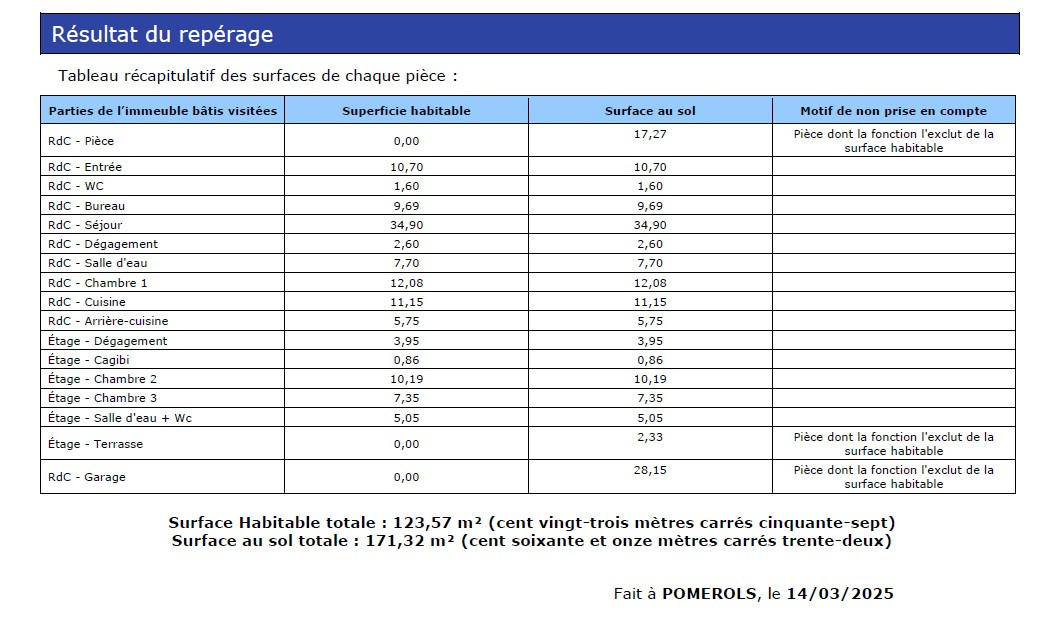 Superficie habitable 123 m², surface au sol totale 171 m²