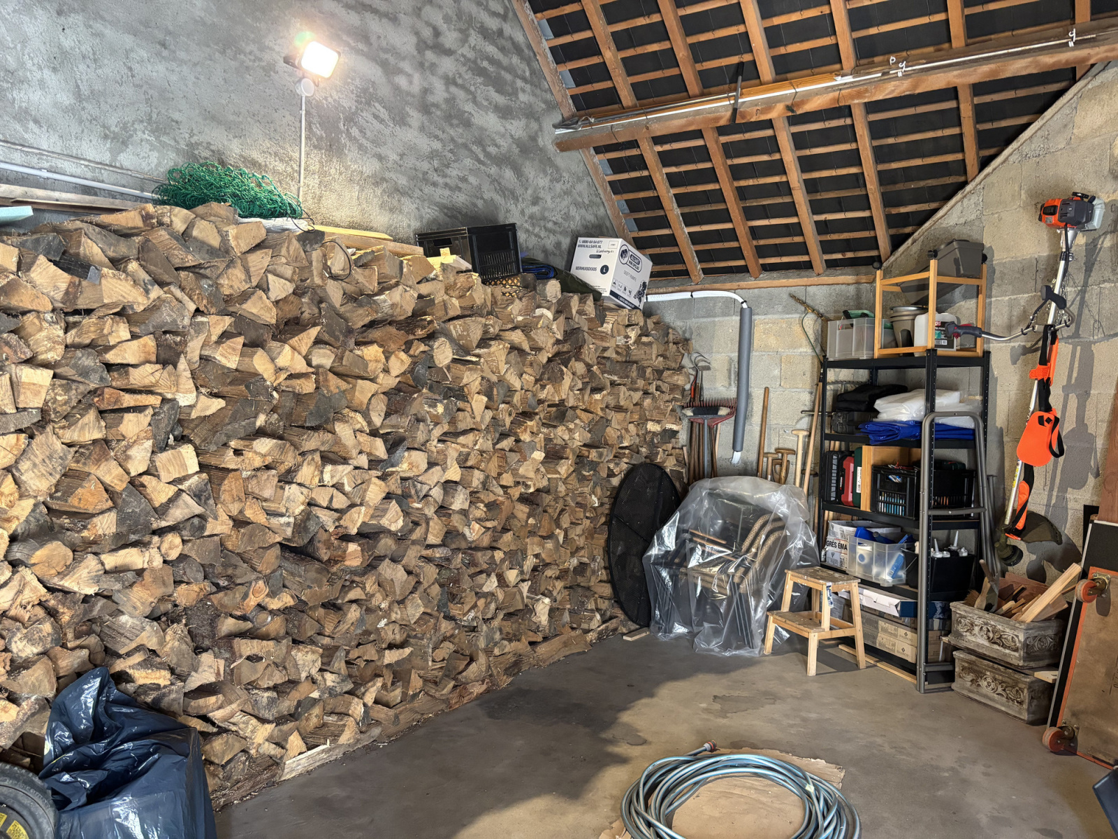Il y a un système de ventilation dans la cuisine et dans les deux salles d’eau/bains. Le toit est en bon état, tout comme les volets en bois. La maison dispose d'un garage spacieux et a été récemment rénovée tout en conservant ses détails français authentiques, tels que les poutres apparentes et la cheminée caractéristique autour du poêle à bois.