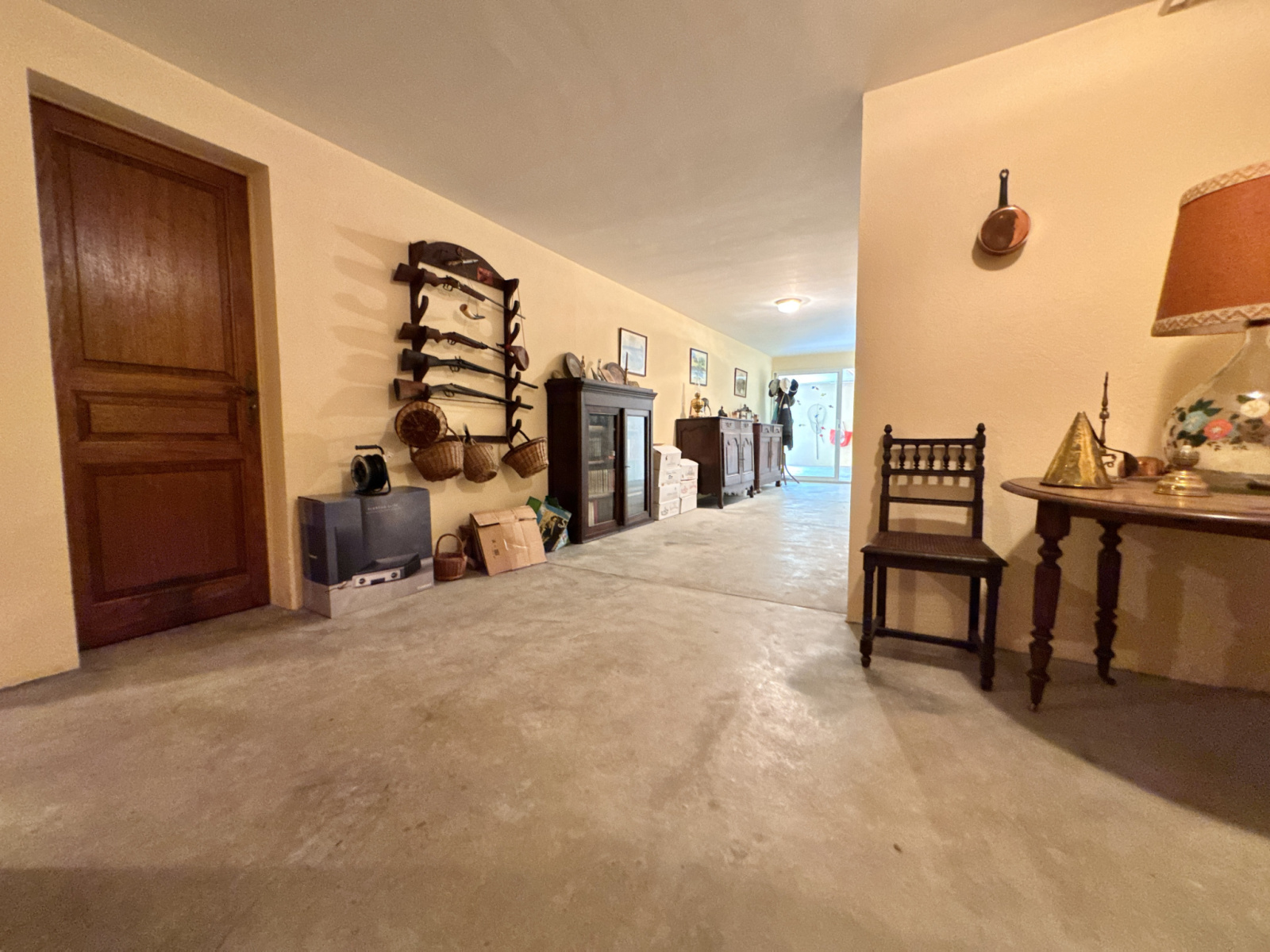 Grand couloir, WC indépendant avec évier (possible salle d’eau), chaufferie, buanderie avec évier de 15,30 m², salle de jeux avec billard de 42 m² avec terrasse couverte, cave à vin de 16 m², grand garage sécurisé avec porte électrique de 54,60 m².