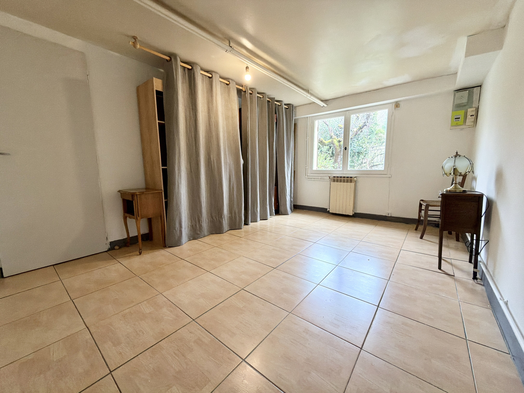 Au rez-de-jardin, un appartement totalement indépendant avec salon, cuisine de 16,20 m², chambre attenante de 13,93 m² et une salle d’eau avec WC de 4,19 m².