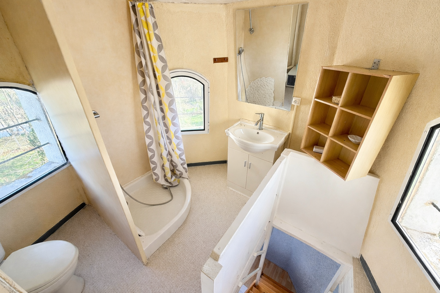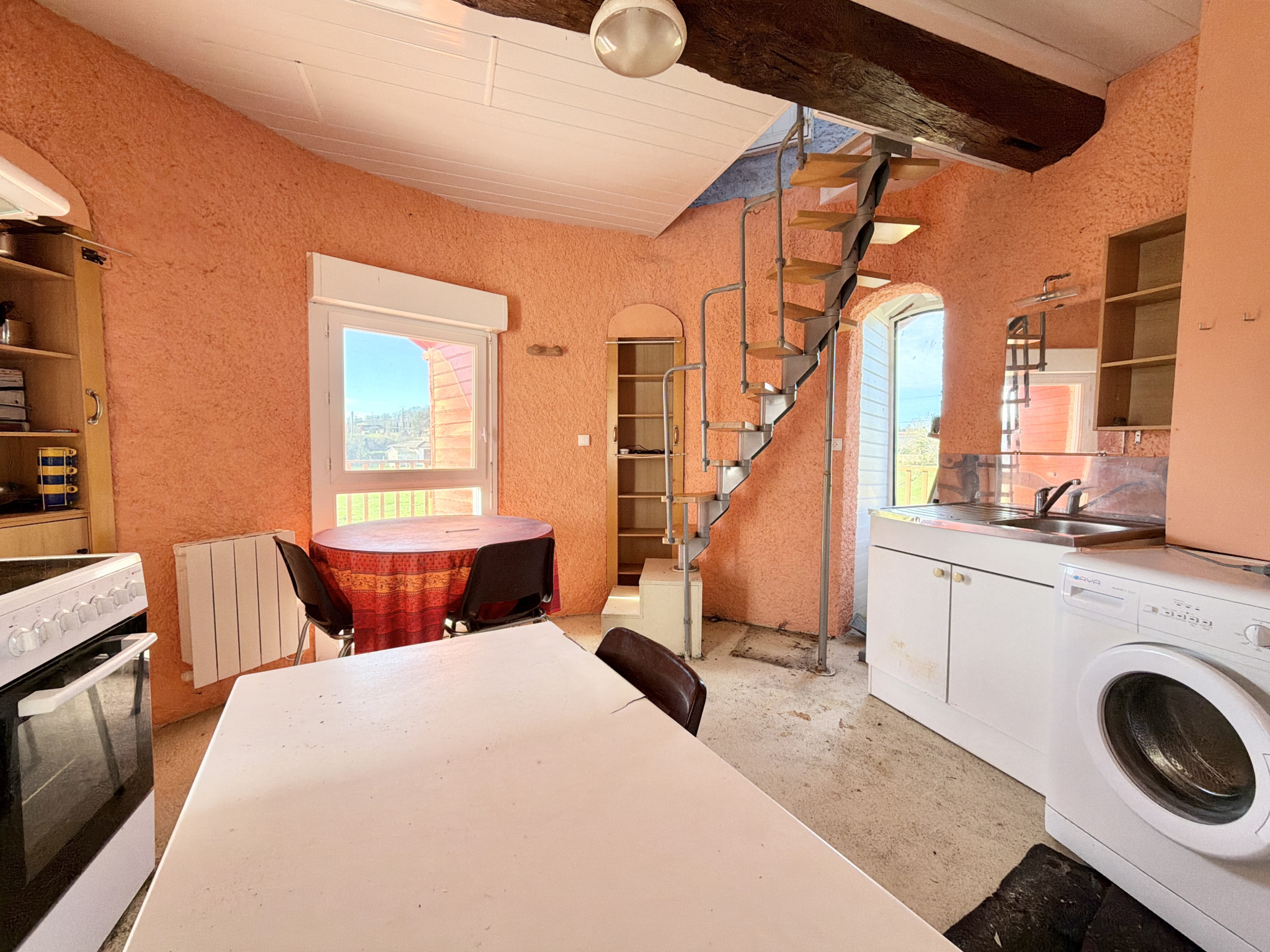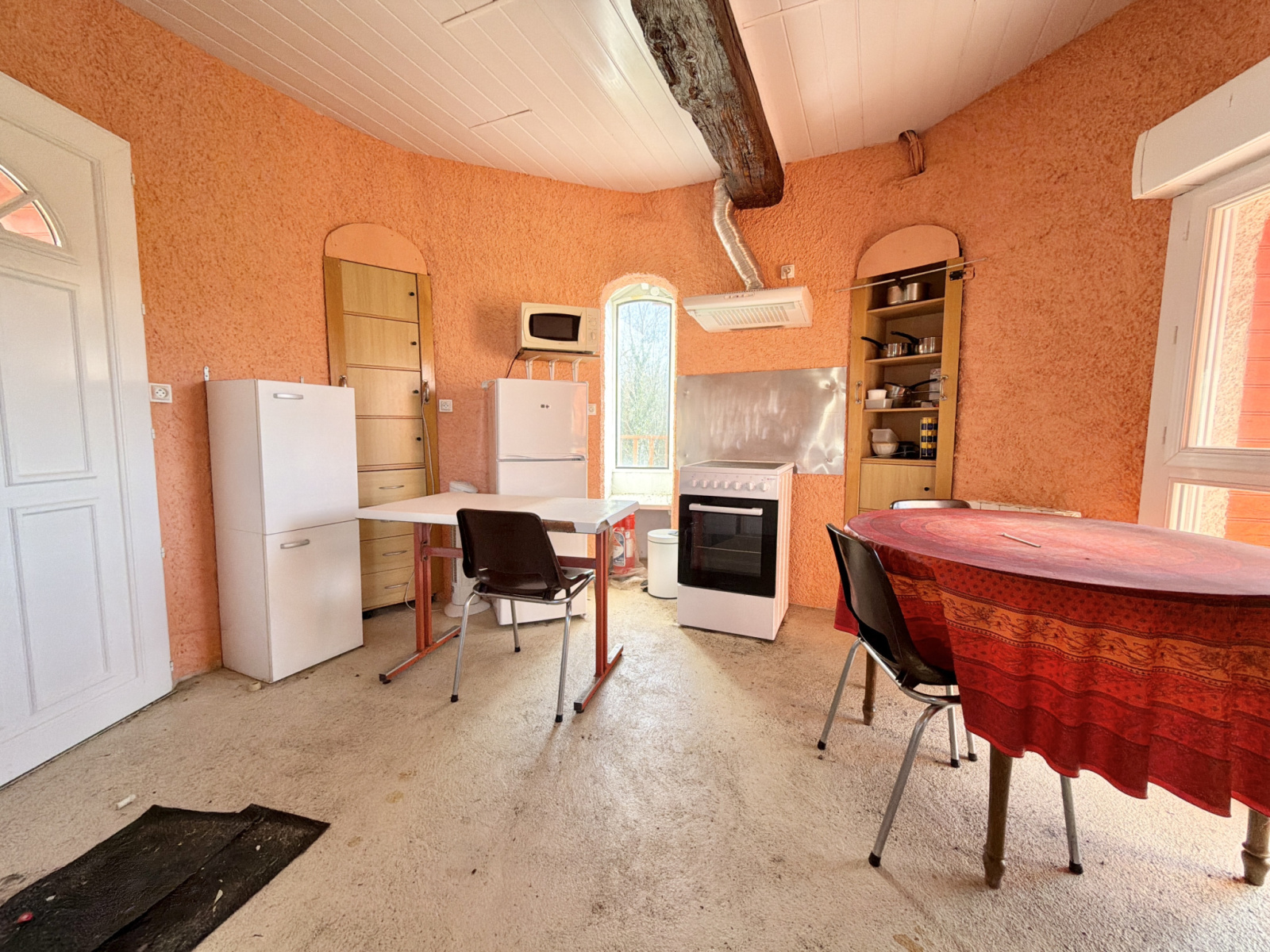 Également un ancien moulin à vent reconverti en gîte, comprenant un salon-salle à manger cuisine équipée, à l’étage une chambre et au dernier étage, une salle d’eau avec WC.