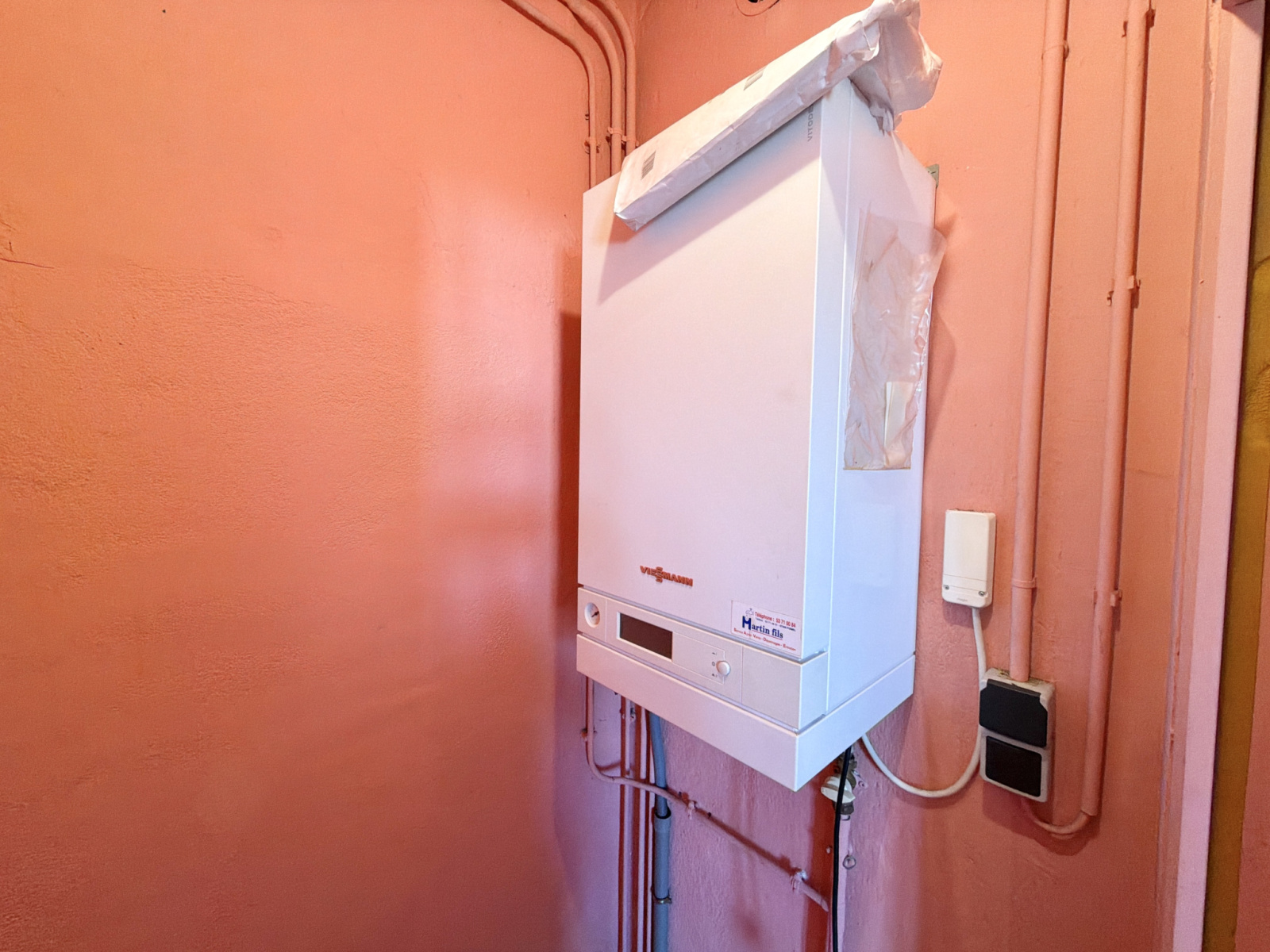 Chaque bâtiment dispose d’un compteur individuel électrique et d’une fosse septique individuelle. Isolation en laine de verre, double vitrage, chauffage électrique et chaudière à gaz de ville pour la maison.