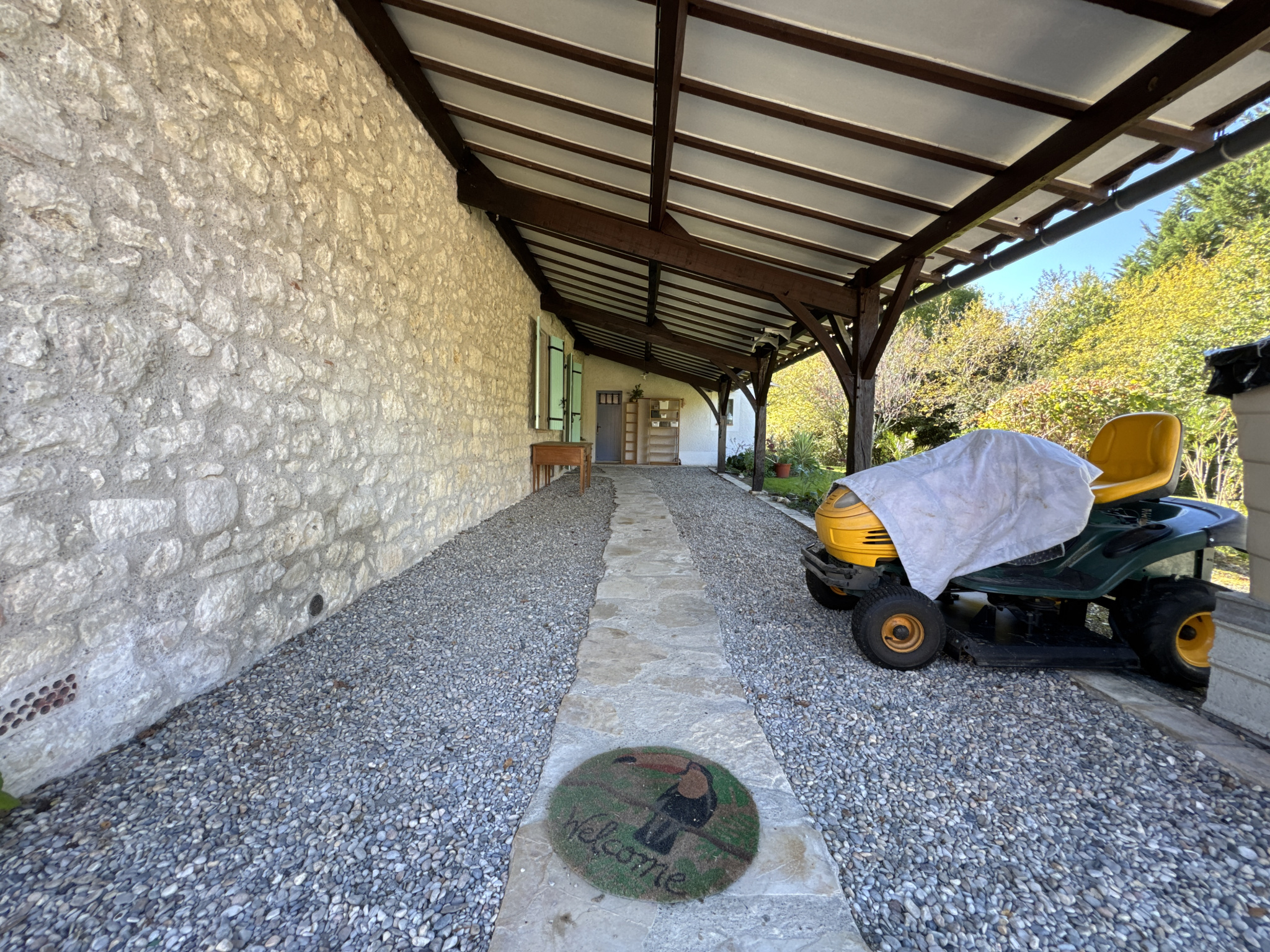 Comprenant une entrée couverte, idéale pour installer une table à l’ombre pour des repas au frais l’été.