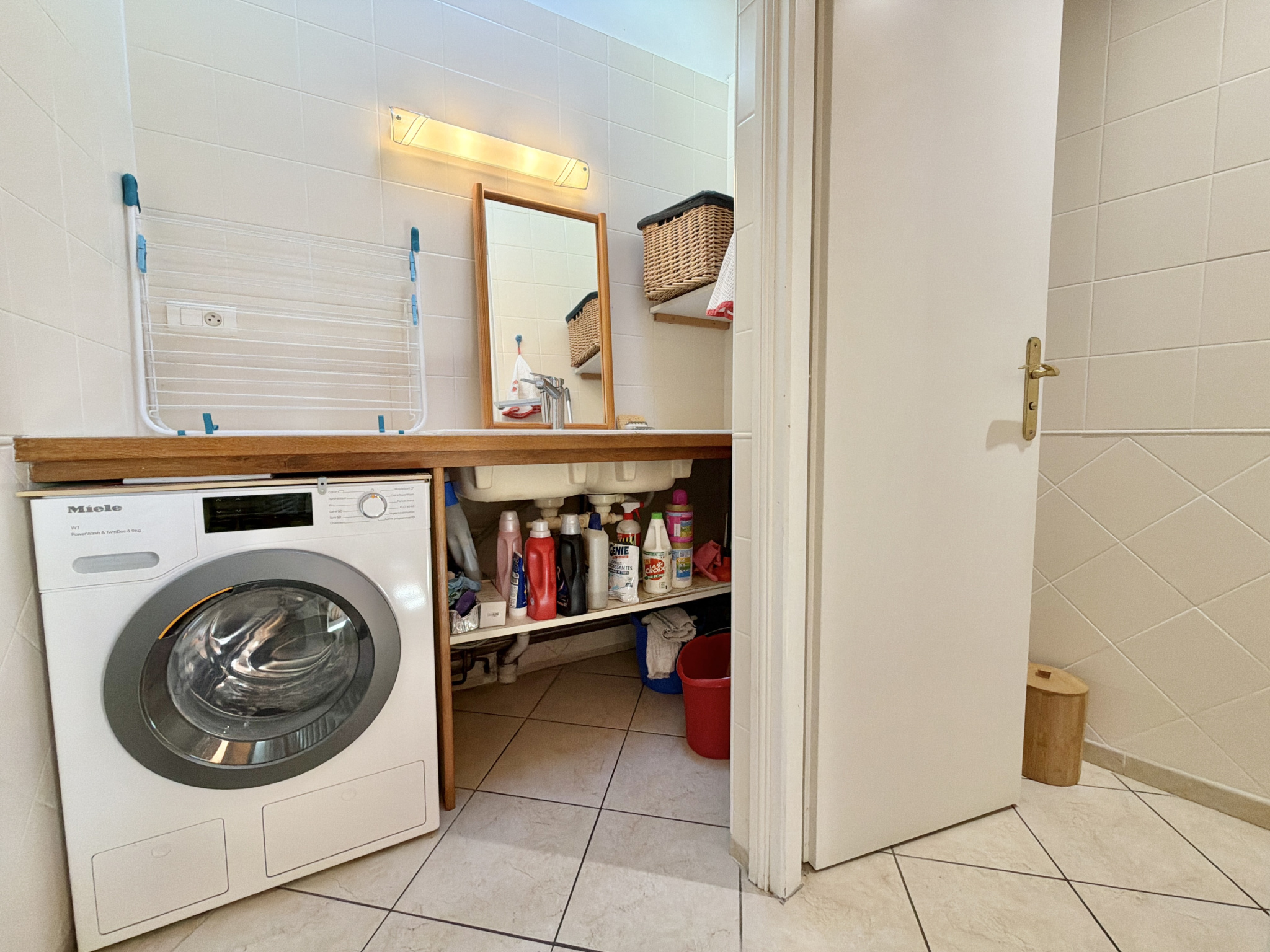 Côté extérieur, une petite terrasse couverte, idéale pour déjeuner à l’ombre l’été, ainsi qu’une terrasse plus ensoleillée devant la cuisine avec store ban électrique.