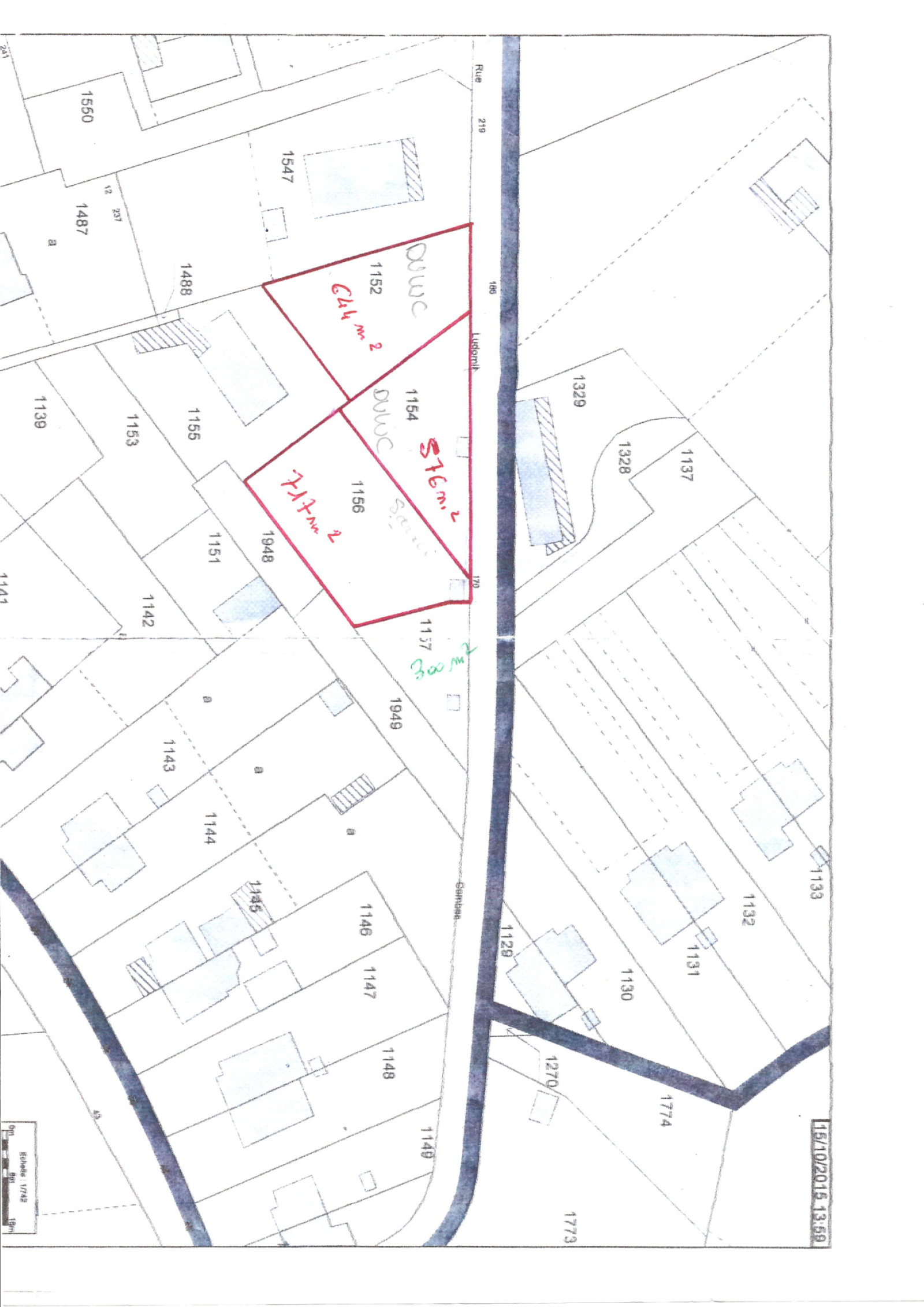 Vous disposez d’un premier terrain de 644 m², un second de 576 m², et un troisième de 717 m².