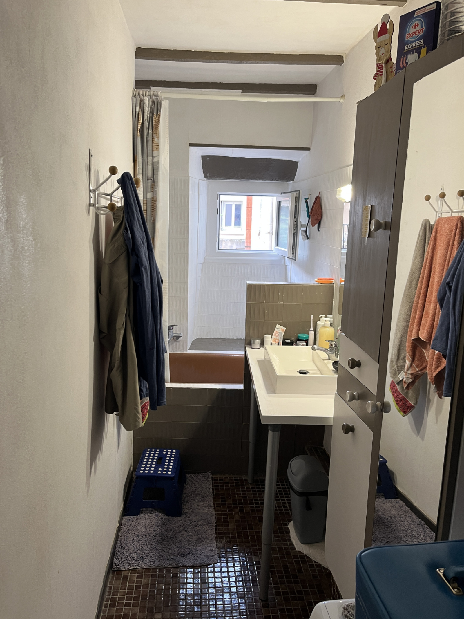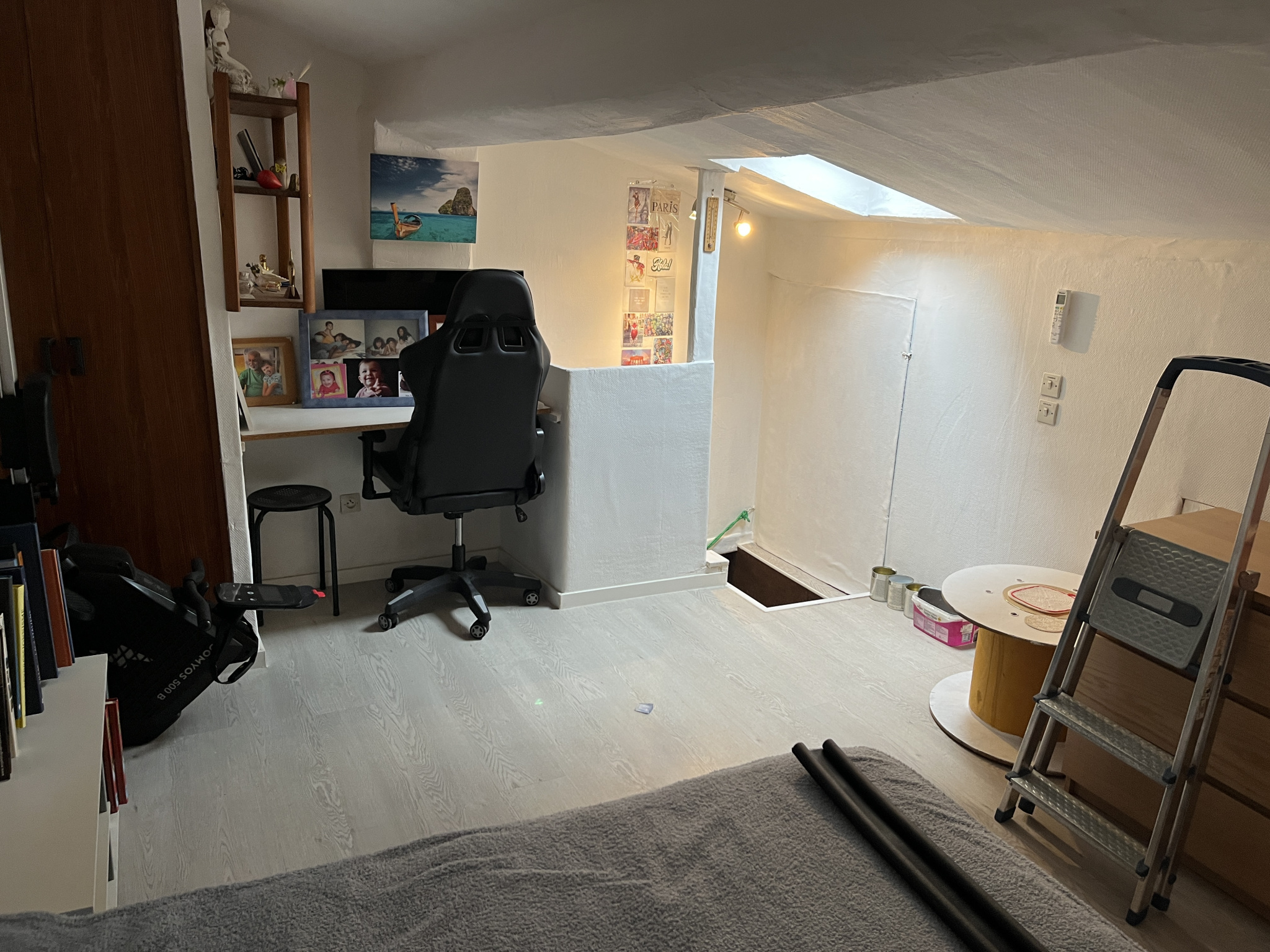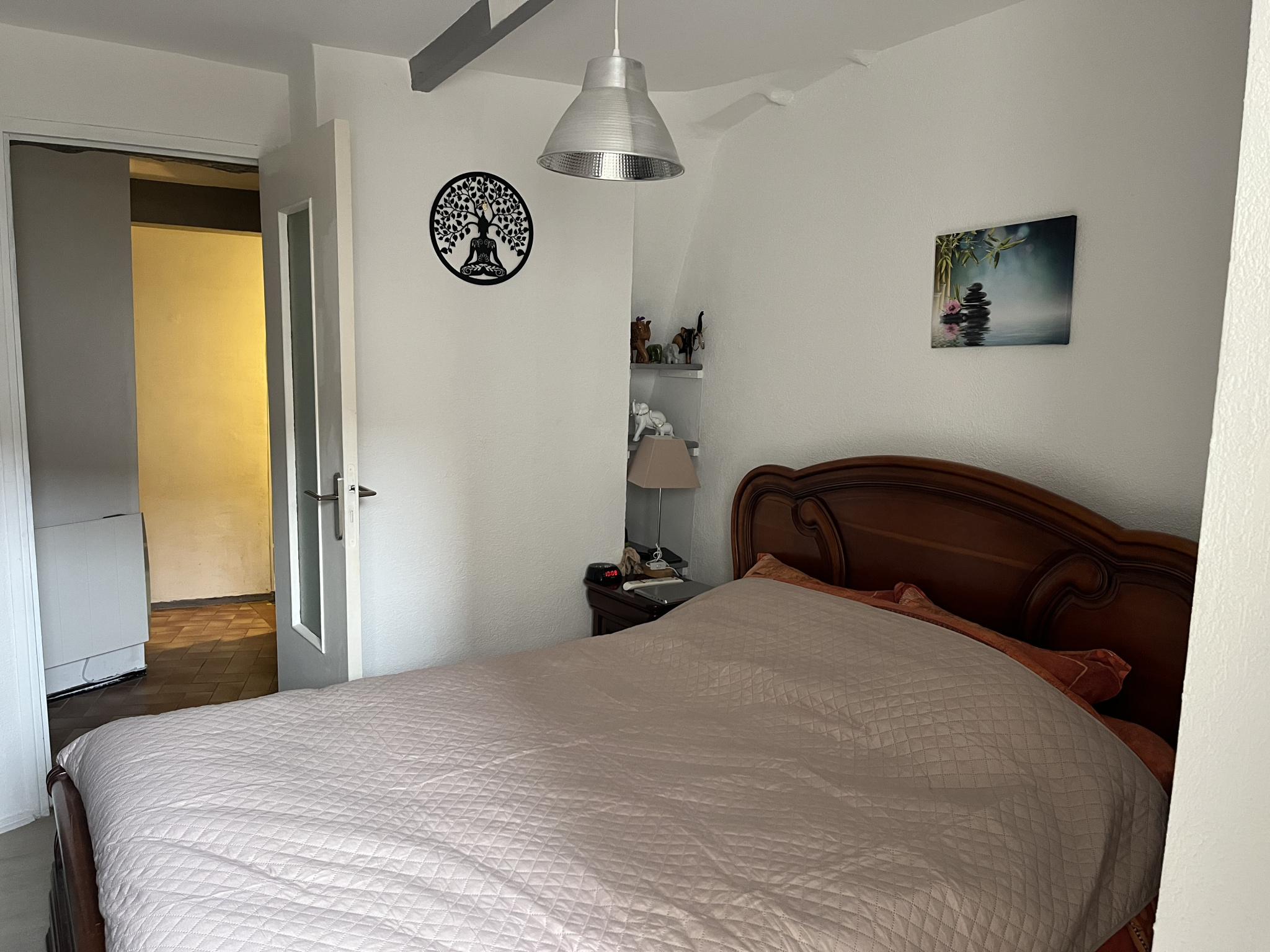 Dans une impasse calme, maison individuelle composée au RDC sur 27m2 d'un séjour/salon/cuisine équipée. Au premier un palier distribue un bureau de 7,8m2, une chambre (10m2) avec rangement, une SDB (4,6m2) et un WC indépendant. Au second une chambre de 12m2 avec rangements. Bon état général : Fenêtres DV/Volets électriques - Clim réversible - Poëlle à granules - Radiateurs à inertie - Couverture rénovée - Tableau électrique neuf. DPE en révision. RSAC 900747676 - Agent Commercial N. WUCHER