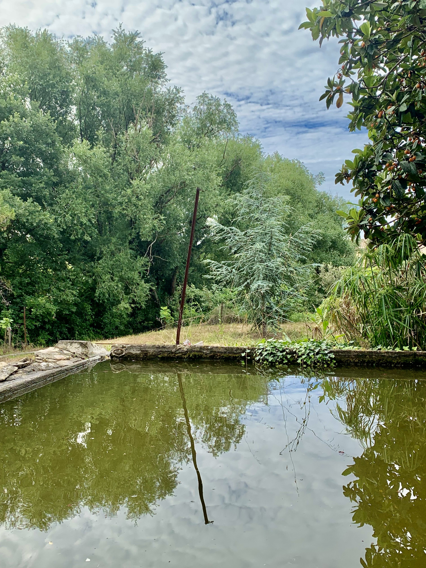 A l'extérieur, l'aménagement d'une piscine sera possible, actuellement vous disposerez d'un bassin alimenté par l'eau de pluie.